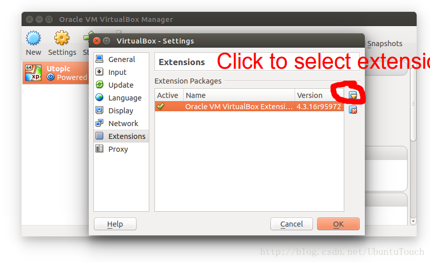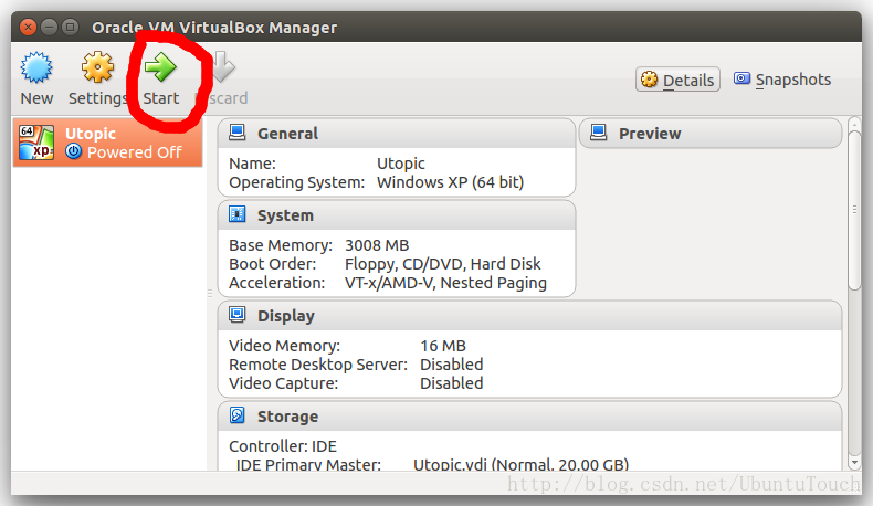 首先,我们关掉Ubuntu OS。打开VirtualBox,并点击菜单中的“