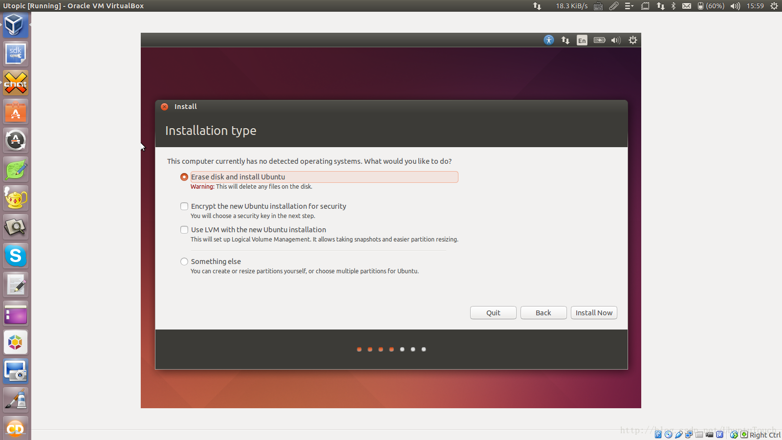 这样就完成了我们初步的设置。下面我们来真正地来安装我们的Ubuntu OS系统。