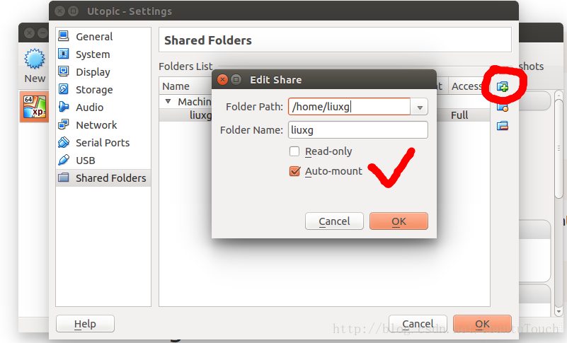 Shared Folders”,来设置可以在host及guest OS之间进行拷贝文件。