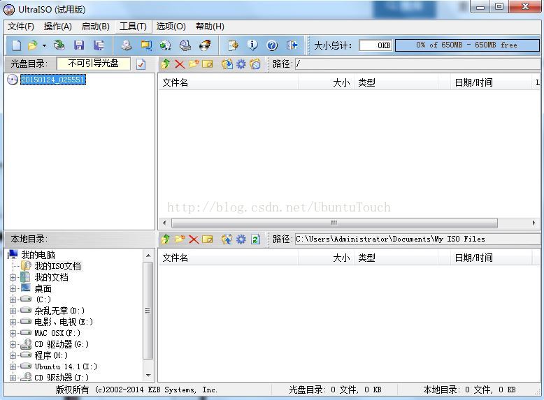 找一个U盘,4G的吧,应该够了,插入电脑的USB接口。小编在这里使用的是UltraISO(http://cn.ultraiso.net/xiazai.html)这个软件。