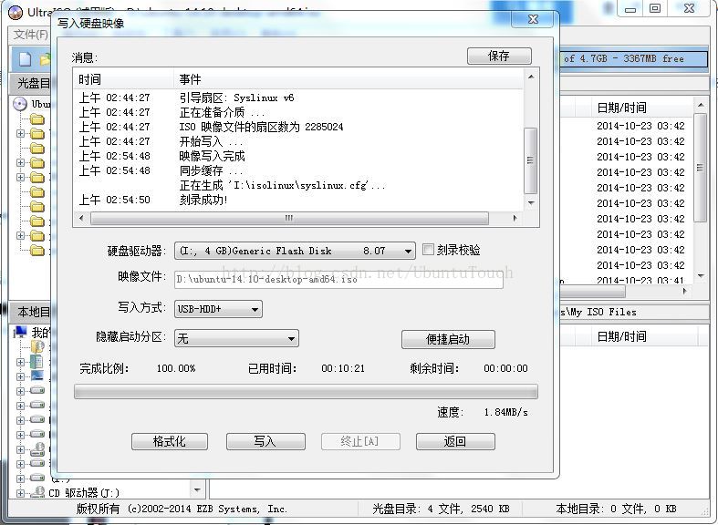然后点“写入”,静候直至出现“刻录成功”的字样。