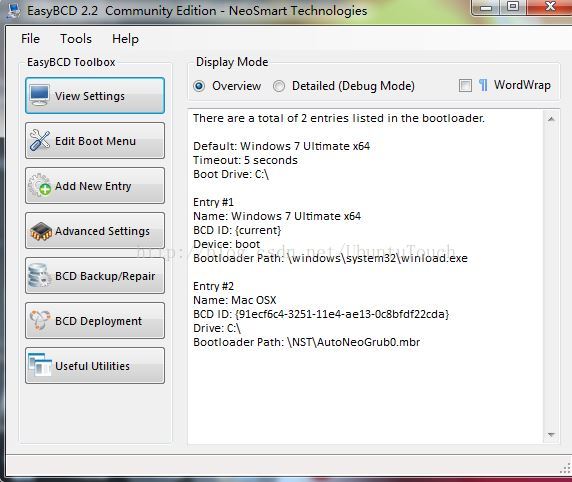 进入windows之后,我们所使用的软件是EasyBCD(http://easybcd.softonic.cn/)