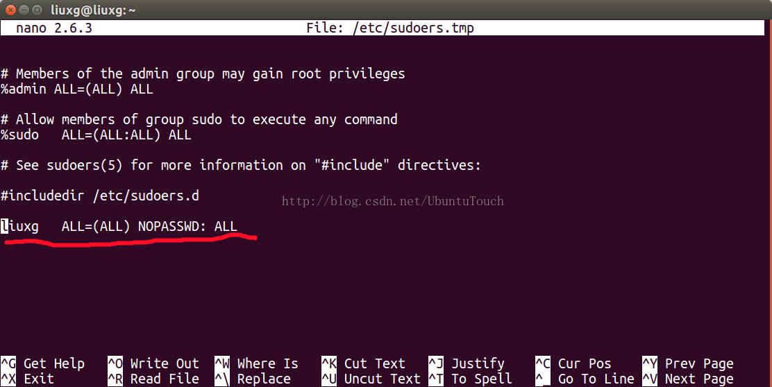 liuxg是我们刚才创建的用户名.开发者需要替换为自己的用户名.