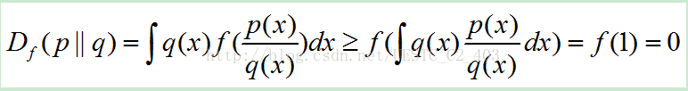 p和q是同一个空间中的两个概率密度函数,它们之间的f散度可以用如下方程表示: