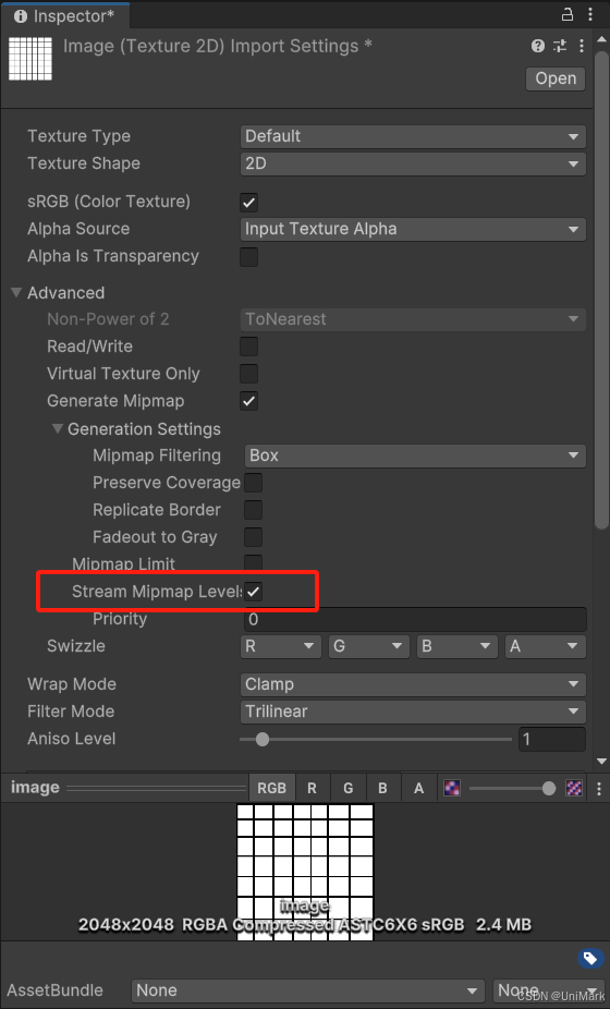 但是,Mipmap依然有缺陷,使用它意味着增加了内存开销,为了解决这一问题,Unity又推出了MipmapStreaming技术。