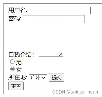 <input type ="radio" name ="单选框名" value="当前项的值,显示内容"/>