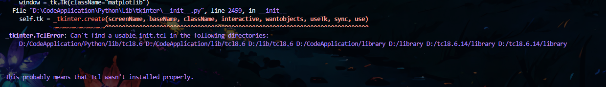D:/CodeApplication/Python/lib/tcl8.6 D:/CodeApplication/lib/tcl8.6 D:/lib/tcl8.6 D:/CodeApplication/library D:/library D:/tcl8.6.14/library D:/tcl8.6.14/library