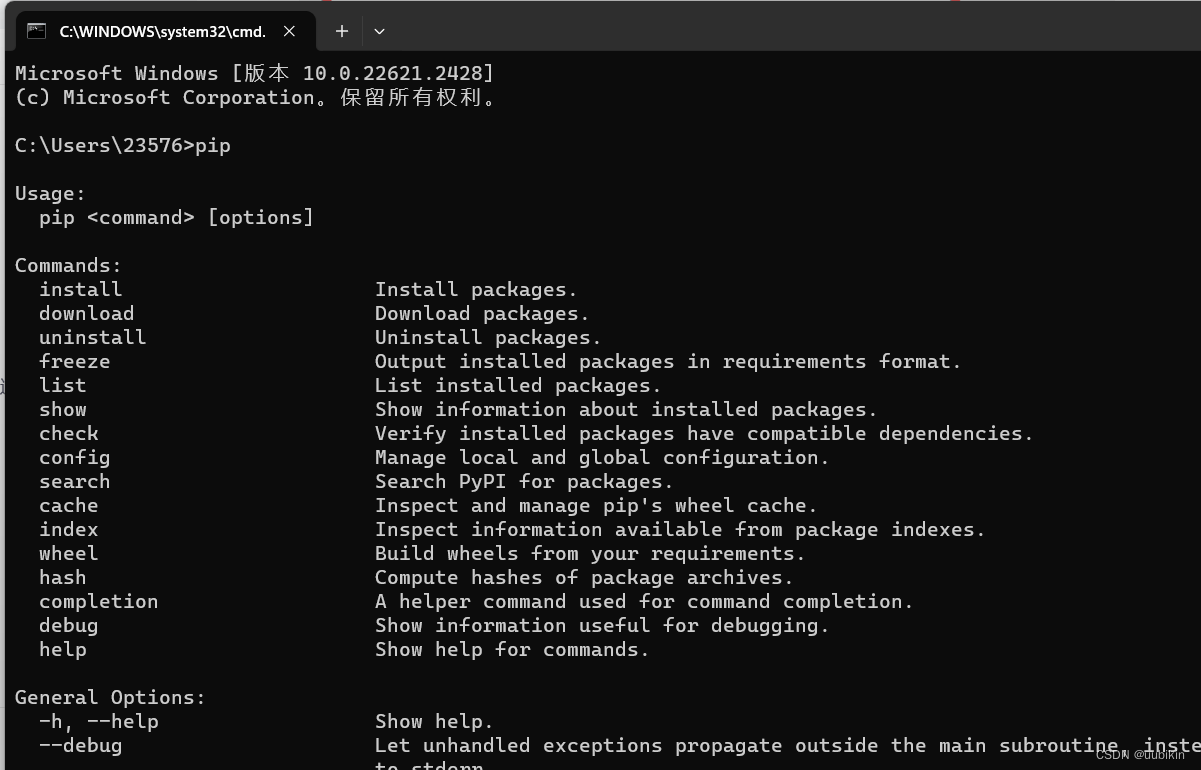 4.进行测试:win+R--->输入cmd-->输入pip