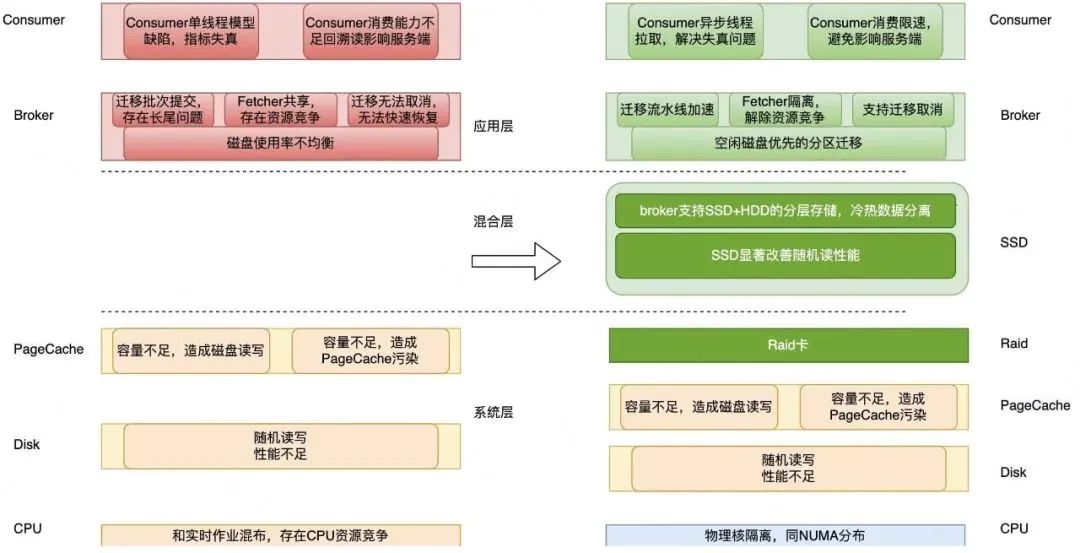 2)Broker的数据迁移存在效率问题和资源竞争问题。具体来讲,包括以下3个层面: