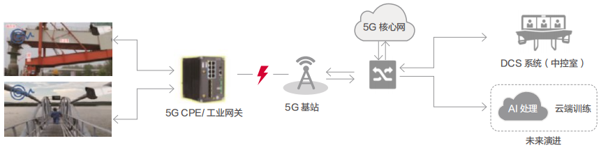 通过摄像头的高清视频传输和 PLC 之间控制信号数据传输,优先开展了几种应用场景的验证,例如远程 / 无人天车的操控、高危区域高清视频监控: