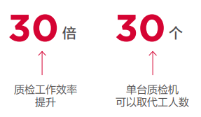 AI 质检机连续拍摄多张超高清照片,传输到 AI 算力平台进行图像检测并给出检测结果。AI 算力平台基于图像识别技术,模拟生产线工人表面检测工序,通过样本进行机器学习,2000 份数据样本的情况下可以达到 99.96% 查全率,质检效率是人工的 30 倍左右。