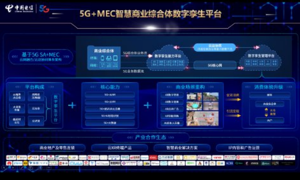 中国电信率先打造全国首个 5G+MEC 智慧商业数字孪生平台,为实体商业构筑 5G 新基建数字能力底座。