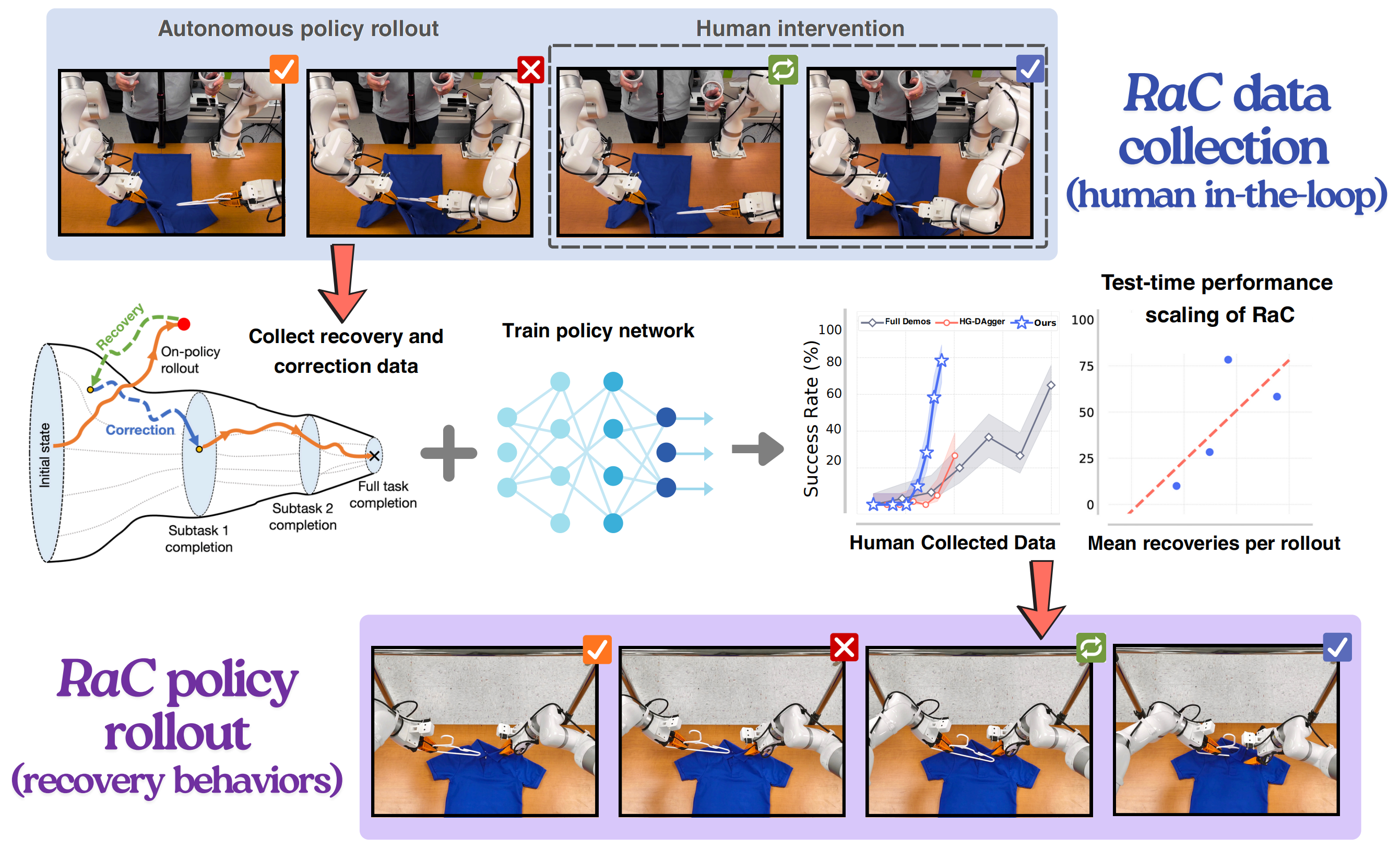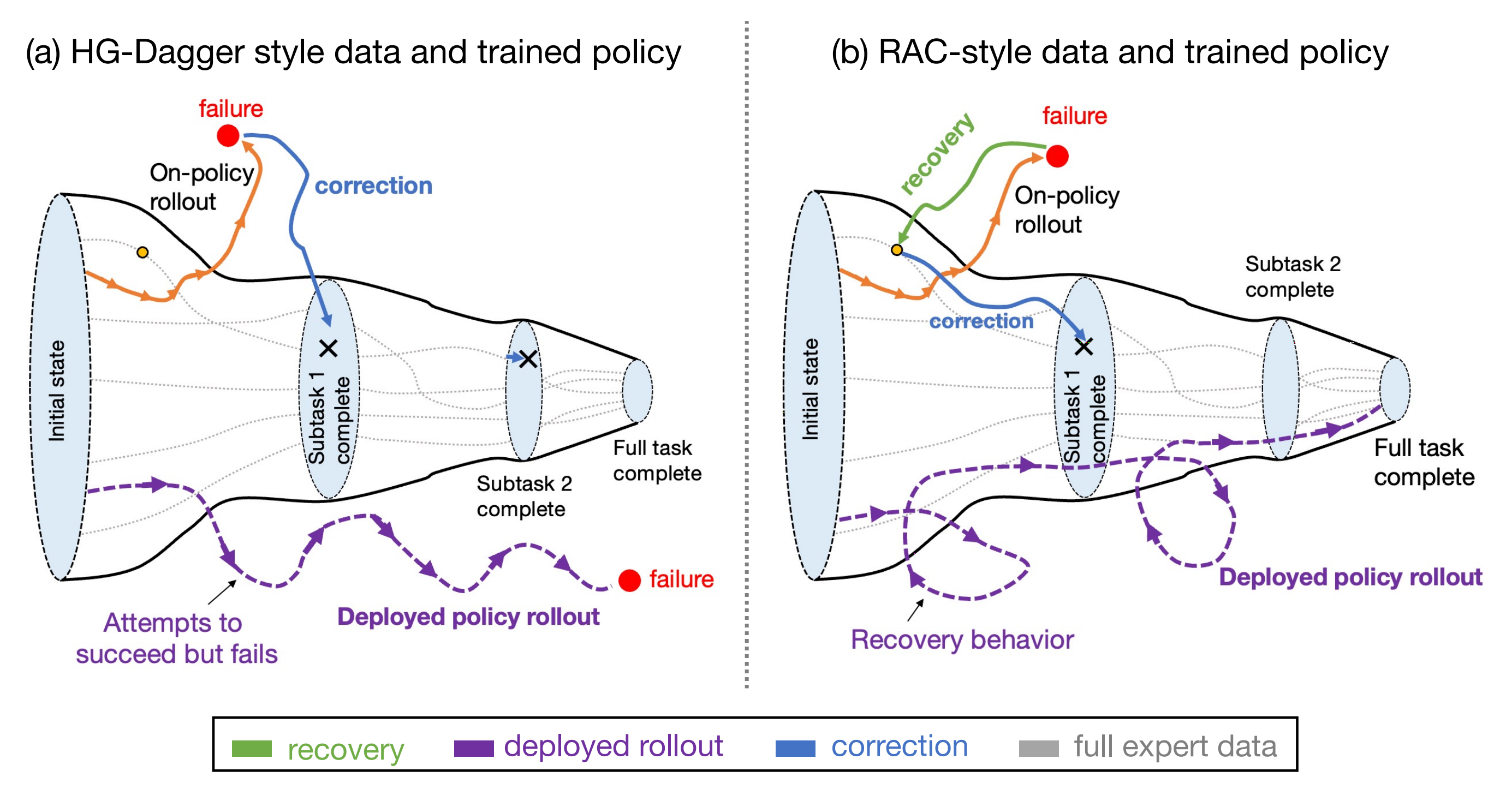 - 在RaC 中,作者使用“恢复和纠正机器人行为的人类干预轨迹” 对机器人策略进行微调