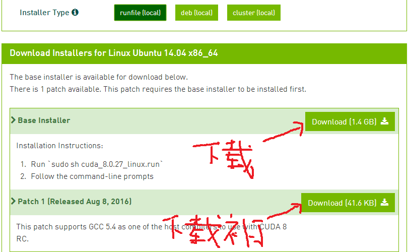 (1)在NVIDIA的CUDA下载页面下,选择要使用的CUDA版本进行下载。