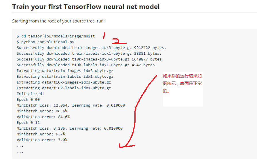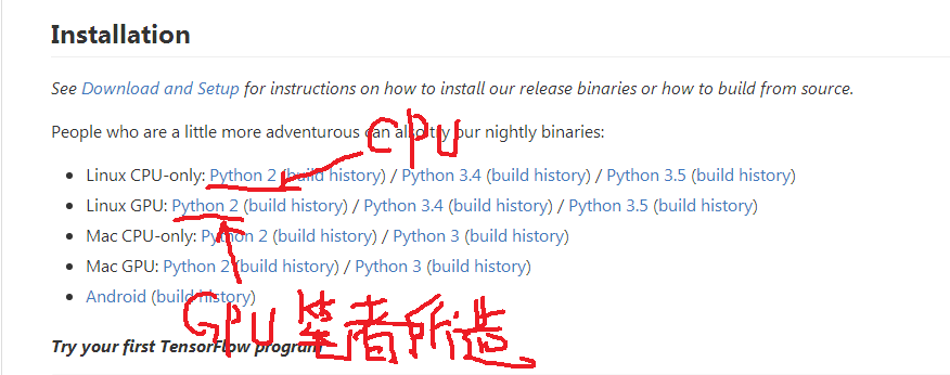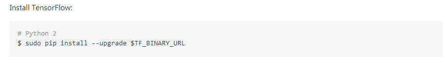 之后回到之前的Tensorflow安装教程页面:https://github.com/tensorflow/tensorflow/blob/master/tensorflow/g3doc/get_started/os_setup.md