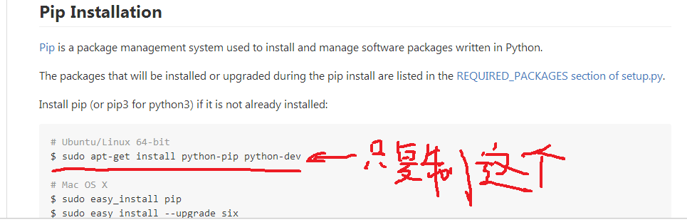 sudo apt-get install python-pip python-dev (这个不完整,完整版如下)