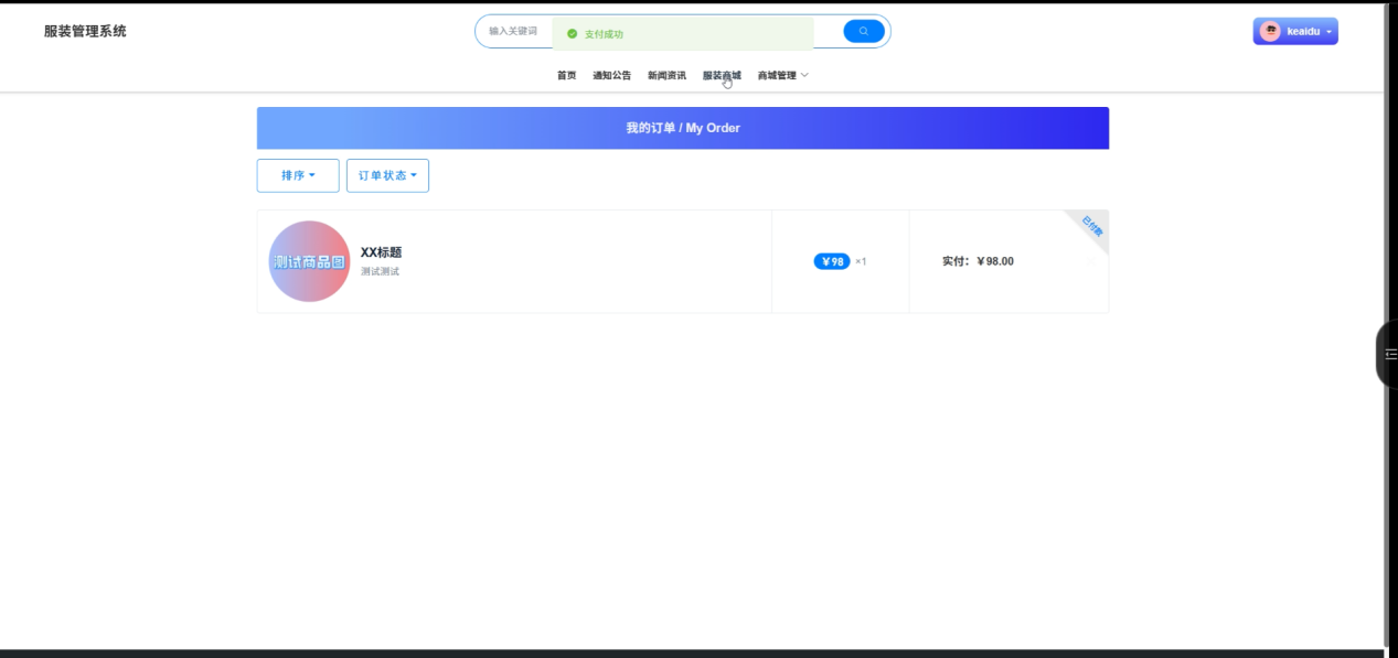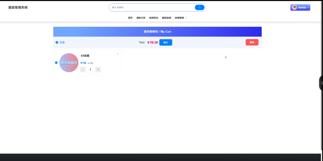 | 测试目的 | 检测服装商城时的各种操作的运行情况 | |