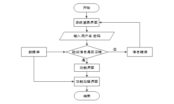 用户访问系统,进入登录页面页面,入其用户名和密码,后端服务接收登录请求,验证用户提供的用户名和密码是否匹配数据库中存储的信息,验证通过即可登录成功。登录流程图如下图所示。