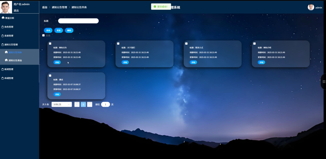 前端部分:前端框架采用了比较流行的渐进式JavaScript框架Vue.js。使用Vue-Router和Vuex实现动态路由和全局状态管理,Ajax实现前后端通信,Element UI组件库使页面快速成型,项目前端通过栅格布局实现响应式,可适应PC端、平板端、手机端等不同屏幕大小尺寸的完美布局展示。
