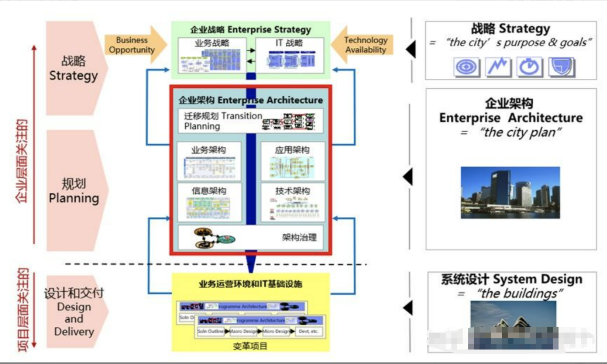 企业架构是战略和实施之间的桥梁,业务变革的关键使能,是设计IT的基础,如果缺少企业架构,那么数字化转型的战略、目标和落地、执行之间将脱节。也就是说数字化转型很难成功。