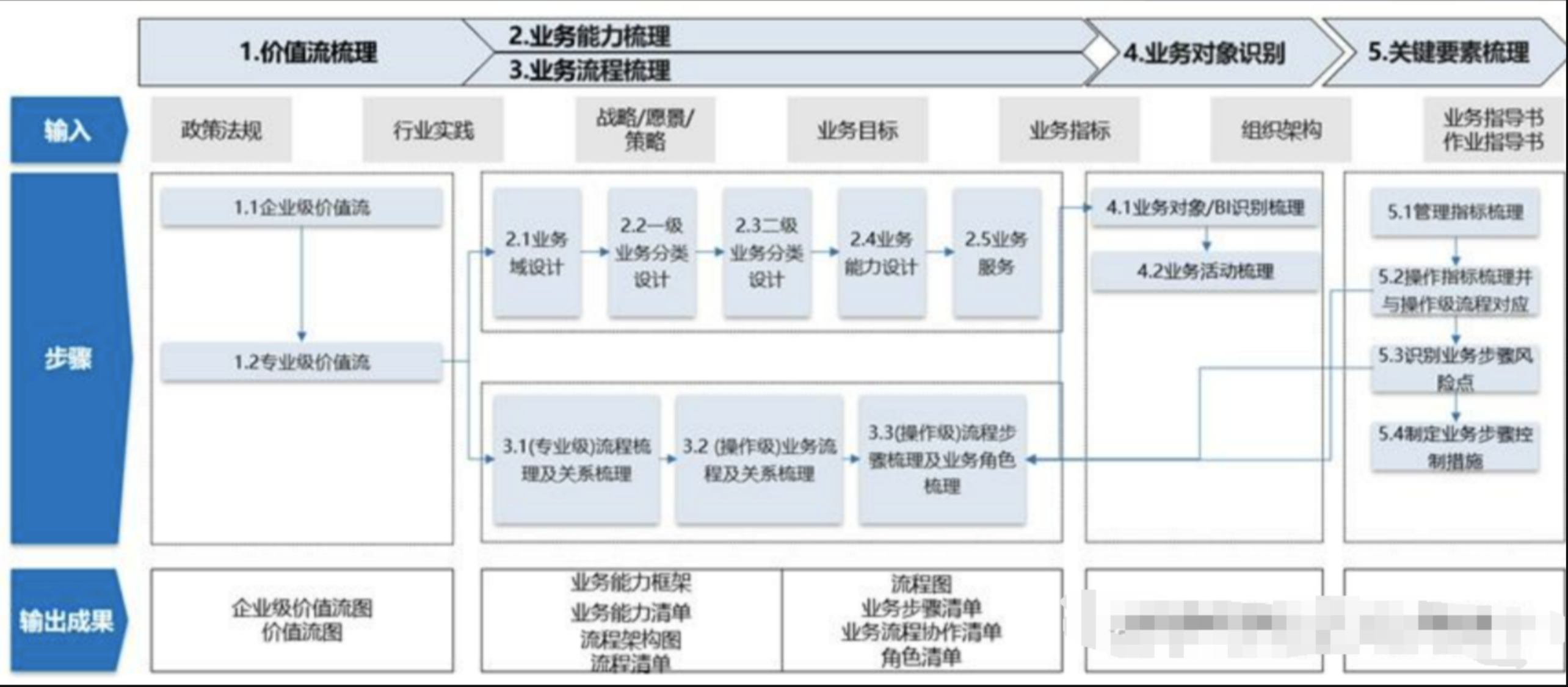业务架构(业务架构看流程【能力主线】) 描述:业务战略、治理、组织和关键业务流程。 L2级,跨部门跨角色的。横向跨阶段,纵向跨角色。