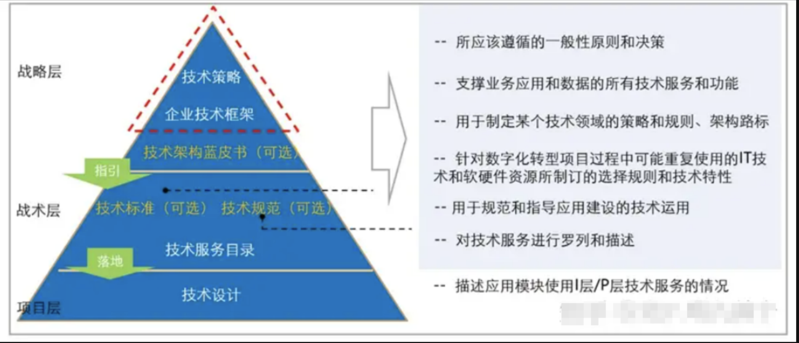 1、 技术架构定义:将应用/数据架构中定义的各种组件映射为相应的技术组件,这些技术组件代表了各种可以从市场或组织内部获得的软件和硬件组件。同时,也定义了技术策略和原则,指导和规范IT产品的规划、设计、实施、运维等场景下的技术工作。
