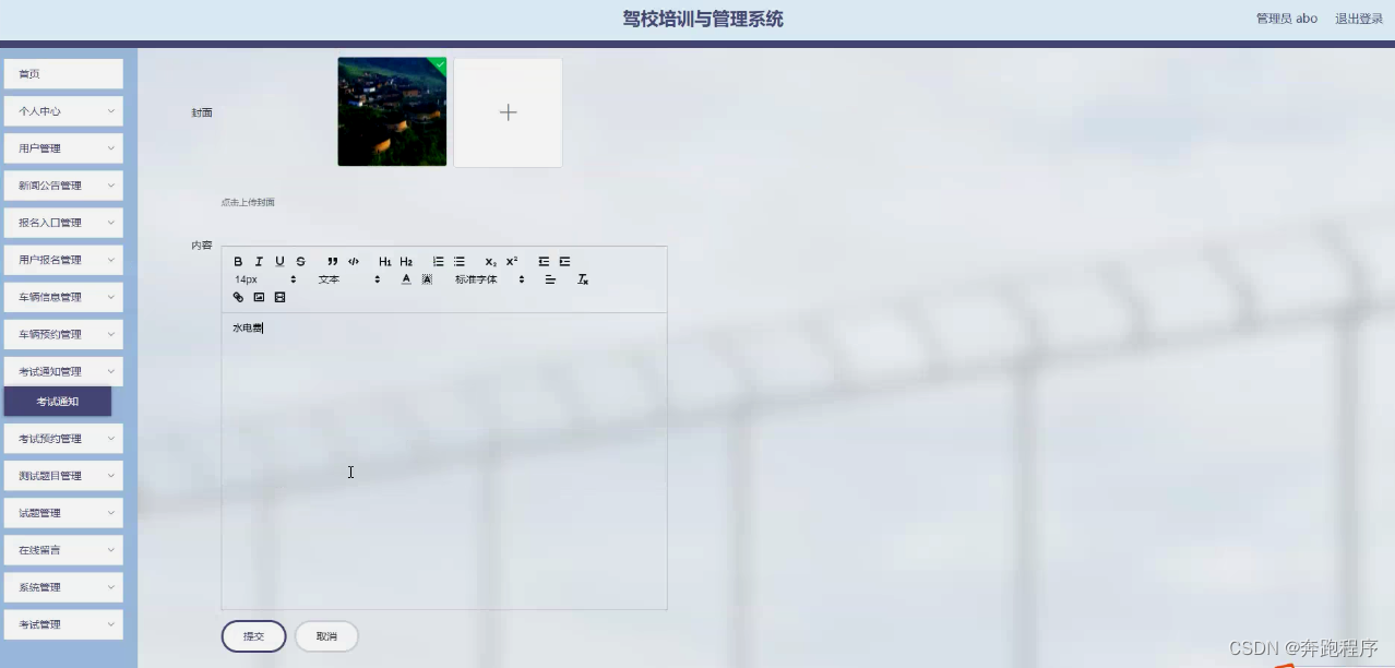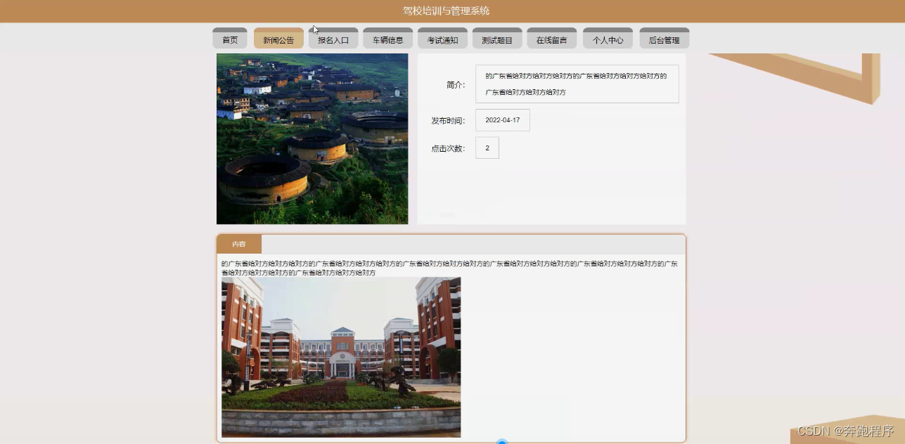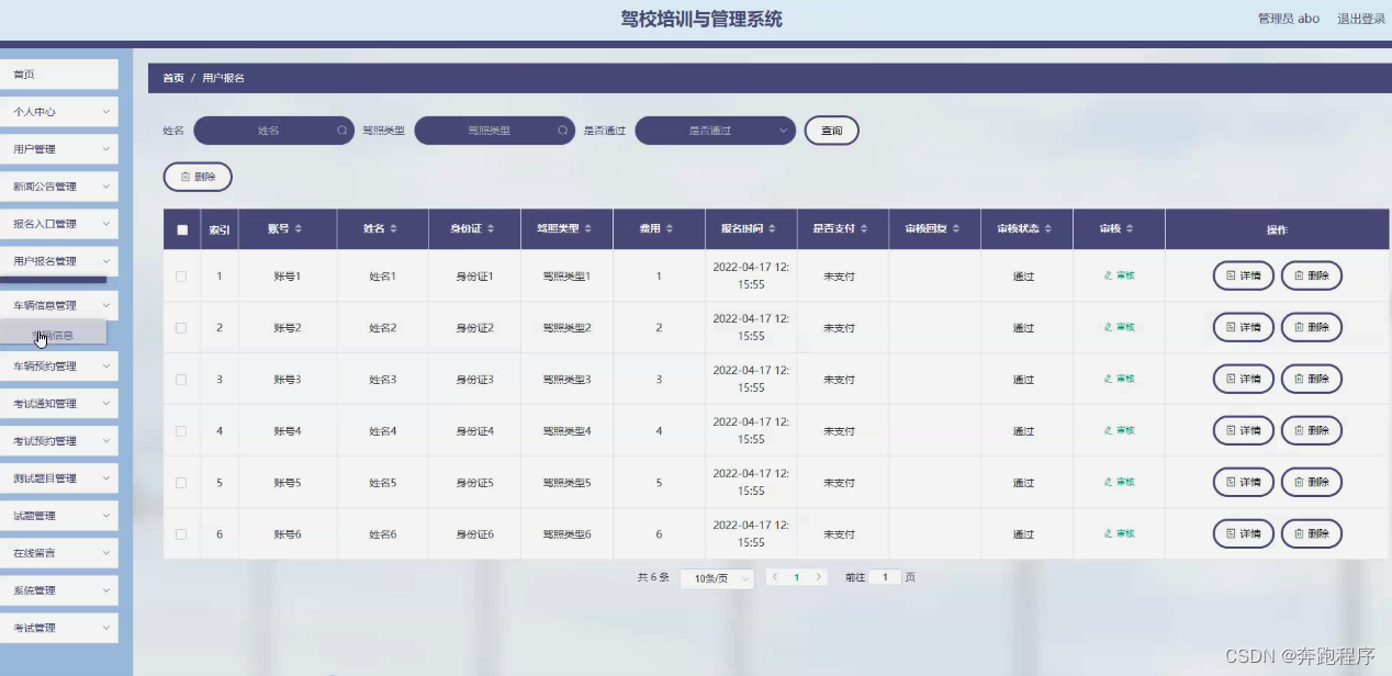 选题背景: 随着汽车产业的蓬勃发展,驾驶技能已经成为人们日常生活中不可或缺的一部分。驾校作为提供驾驶培训服务的重要场所,其管理和培训质量直接关系到学员的驾驶技能和道路安全。传统的驾校培训与管理系统多依赖于人工操作和纸质文档,存在效率低下、信息不透明、数据管理困难等问题。因此,构建一个高效、智能、便捷的驾校培训与管理系统显得尤为重要。该系统将利用前端技术HTML+CSS+JavaScript+Vue进行用户界面设计,后端技术Node.js+Express进行服务器端逻辑处理,以及MySQL 5.7数据库进行数据存储,以实现对驾校培训与管理的全面优化。