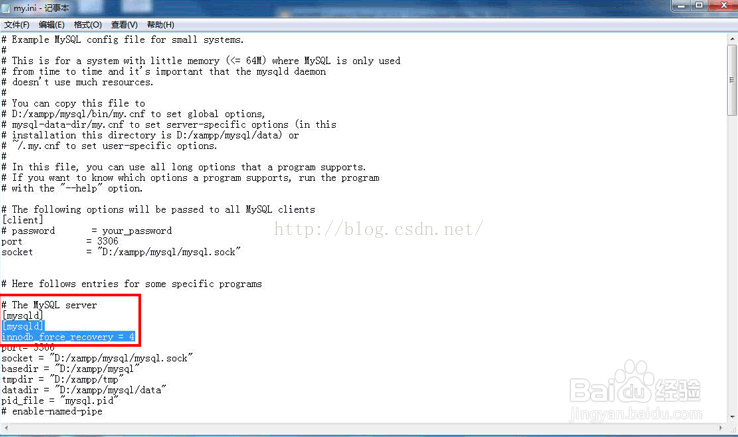 在mysql配置文件内搜索到[mysqld]所在行,在其下方插入