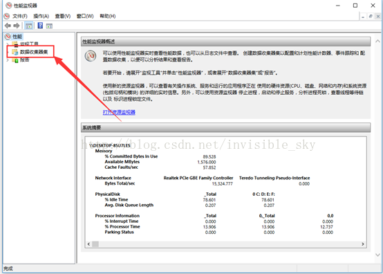 (3) 使用性能监视器中的数据收集器,进行数据的收集