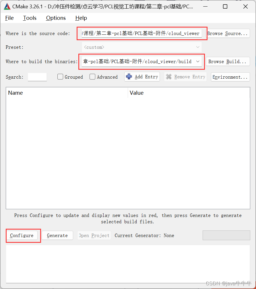 再次点击configure ,再点击generate,显示生成完成