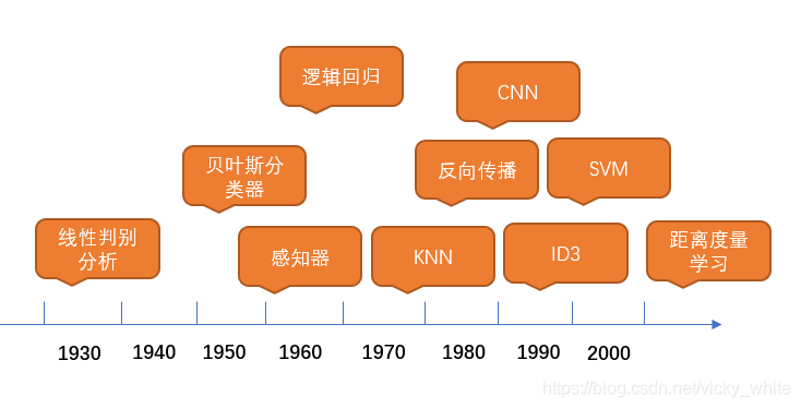 人工智能成为当前计算机领域最炙手可热的方向,在这一点上机器学习功不可没。机器学习用计算机程序模拟人的学习能力,从实际例子中学习得到知识和经验,是一门综合学科涉及到统计学,应用数学,经济学和计算机科学它们之间的联系可以表示成下图1-1。机器学习是人工智能的一个分支,也是人工智能的一种实现方法。它已经走完了近40年的道路,各种优秀的算法被人类研究出来,这些算法的诞生时间可以大致表示如图1-2所示。线性回归就是其中最为经典的算法。它从样本数据中学习得到知识和规律,然后用于实际的决策和推断。