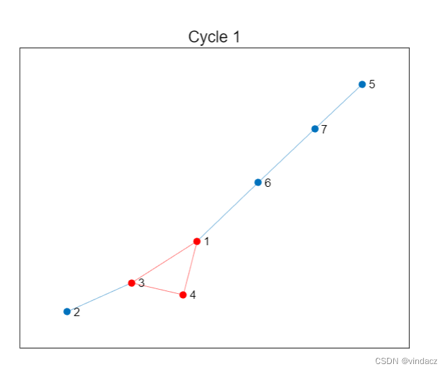 highlight(plot(G),cycles{k},'Edges',edgecycles{k},'EdgeColor','r','NodeColor','r')