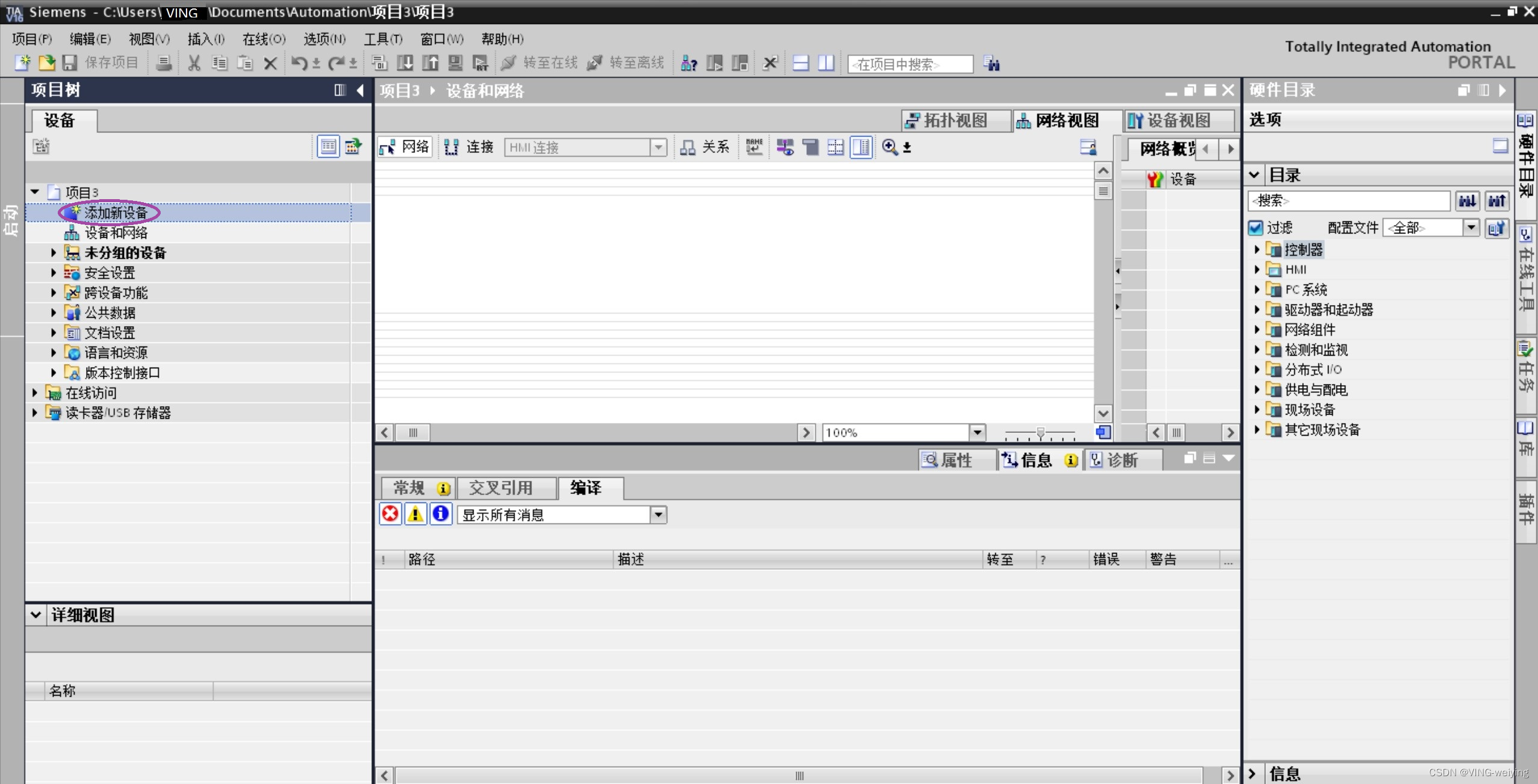 打开博途软件 “TIA Portal V13 ”创建新项目—>输入项目名称—>创建