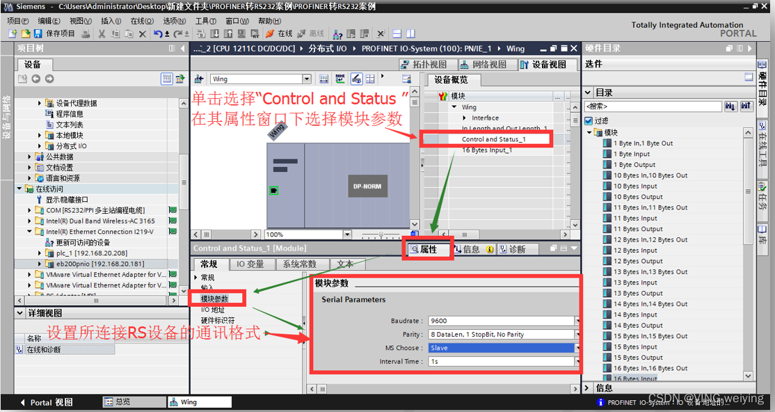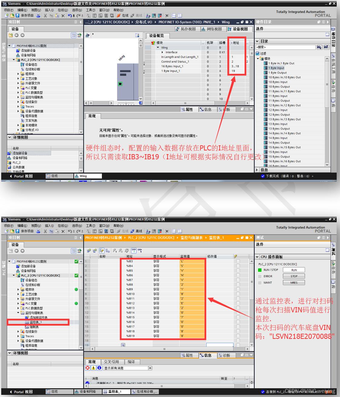 经过上面简单的配置,通过微硬创新RS232转PROFINET/ROFINET转RS232协议转换模块实现不同协议间的数据交换,在PROFINET总线协议下读写设备的数据。