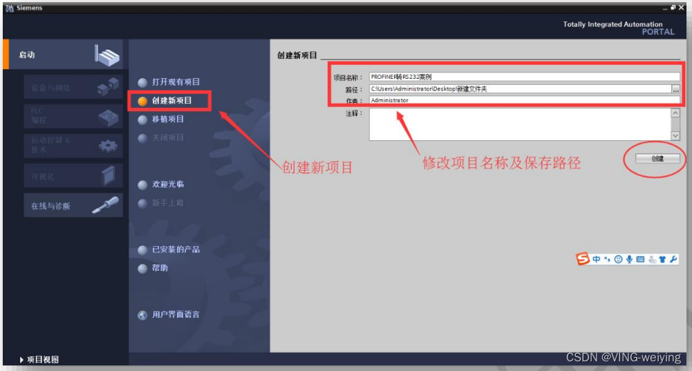 (1) 打开博途软件 “TIA Portal V13 ”创建新项目— 输入项目名称,选取项目保存路径,然后选择“创建”按钮,建立新项目