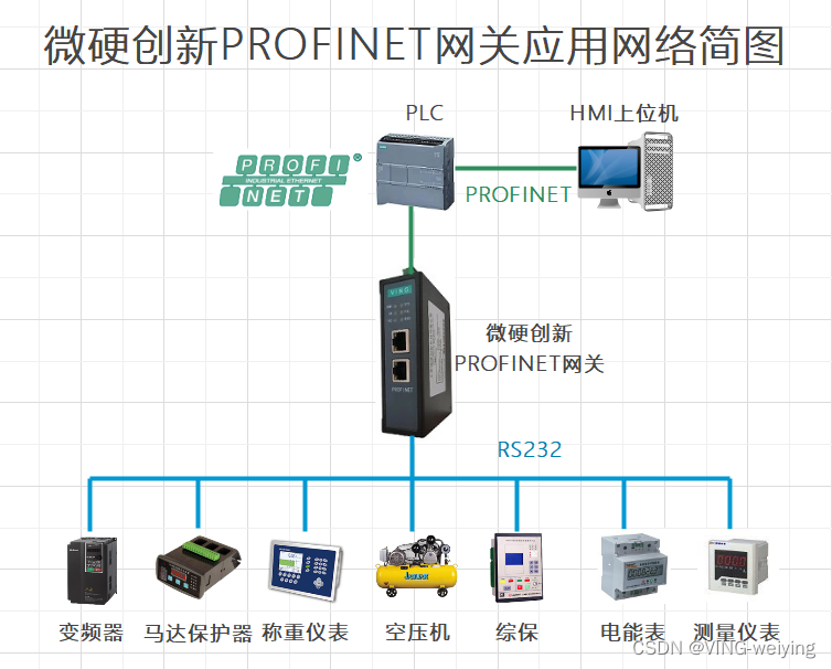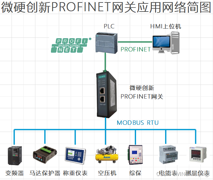使用相应型号的微硬创新PROFINET协议转换网关,用户可以很轻松的完成RS485 RS232 MODBUS RTU和PROFINET的协议转换,在PROFINET总线协议下读写MODBUS设备的数据,实现RS232转PROFINET, RS485转PROFINET,MODBUS转PROFINET。