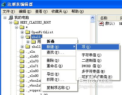 2、在【shell】上单击鼠标右键,选择新建>项,将新项 #1改为使用 Photoshop 编辑
