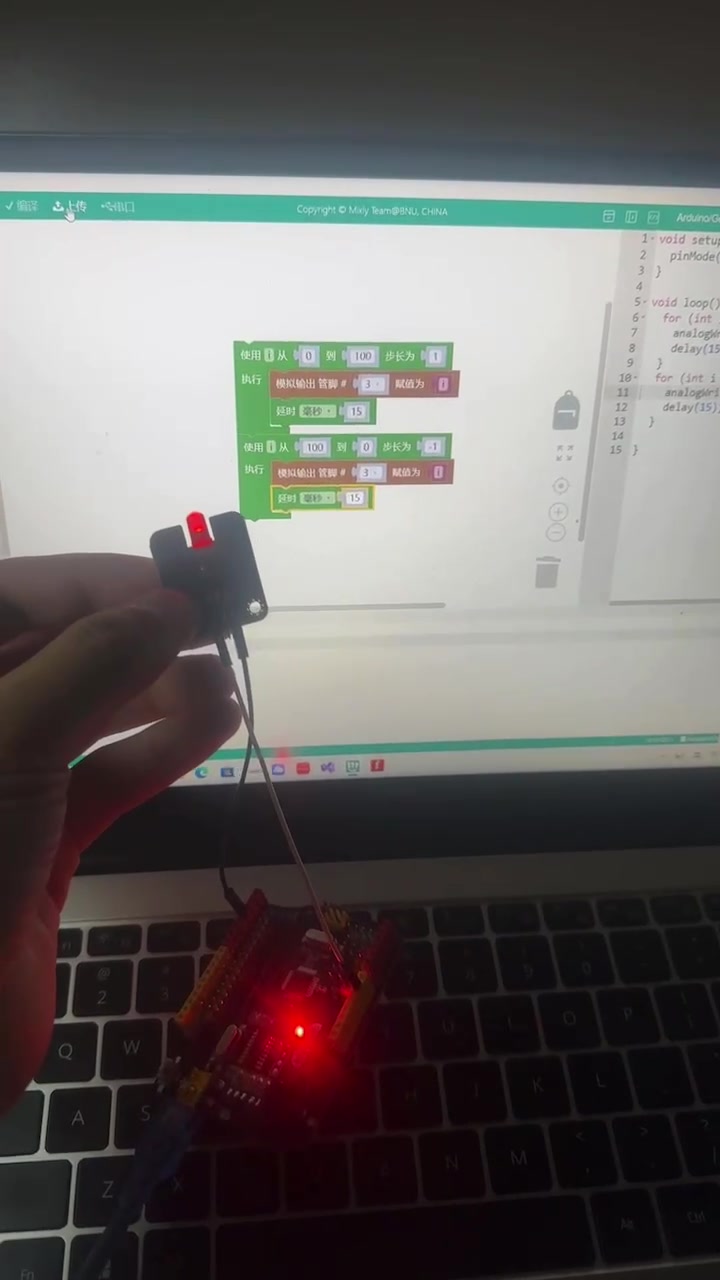用c语言和arduino做一个呼吸灯 一个简单的for循环,首先是建立一个整型变量i,而且i是小于255的,为什么不是300,不是200,不是250呢?因为255是一个区间,属于红光的一个区间(自己的理解,错了请指点),然后有一个i++的循环,而且步长为1,也就是变化趋势。又是一个for循环,和第一个几乎都是一样的,是从255变道0,有一点需要注意的是这里的步长虽然还是为1,但是因为是计算机,所以要搞成i--,这样步长就是-1了。pinMode是输出口的意思,而(3,OUTPUT)就是3号端口供电。最后就会做出一个呼吸灯。