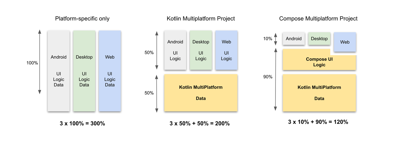 Compose Mutiplatform 作为一个 KM 库,让一个 KMP (Kotlin Multiplatform Project) 中可共享的代码从 Data 层上升到 UI 层以及 UI 相关的 Logic 层。