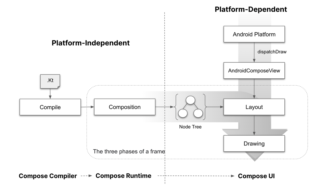 Compose 不止能用于 Android 应用开发,借助其分层的架构设计以及 Kotlin 的跨平台优势,也是一个极具潜力的 Kotlin 跨平台框架。本文让我们从 Compose Runtime 的视角出发,看看 Compose 实现跨平台开发的基本原理。