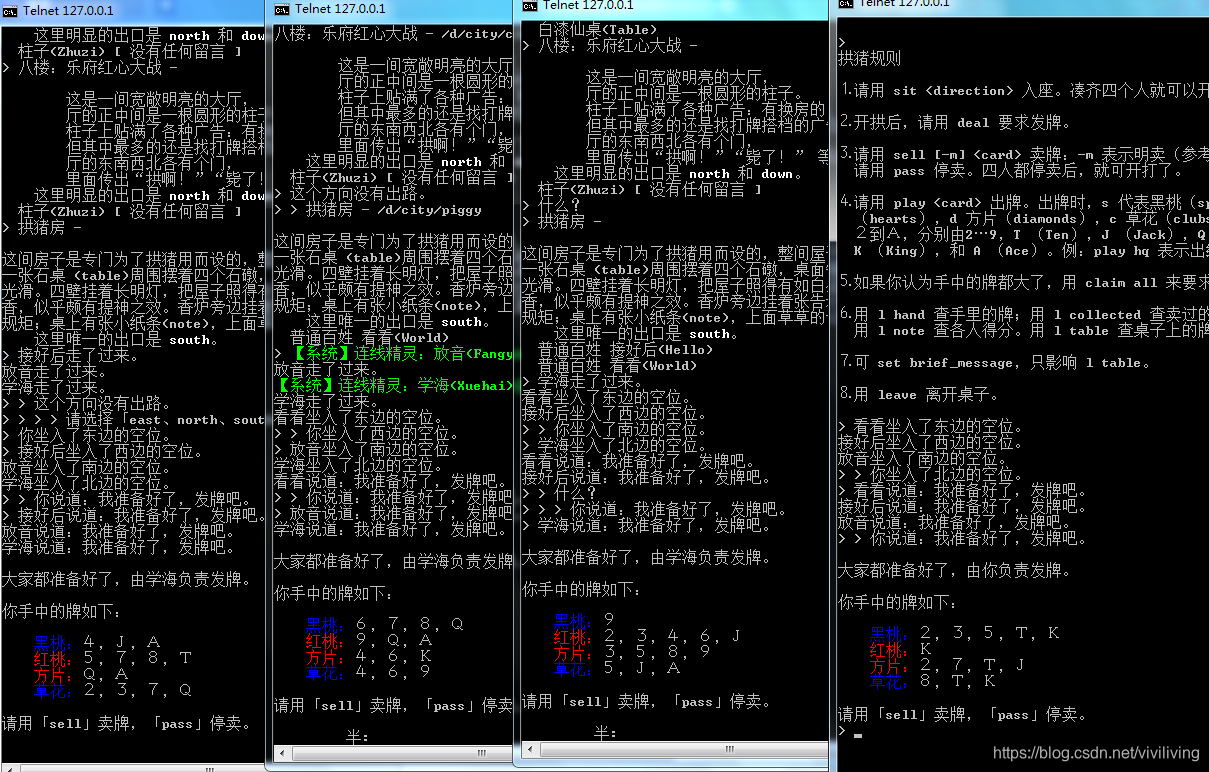 ⒈请用 sit <direction> 入座。凑齐四个人就可以开拱了。