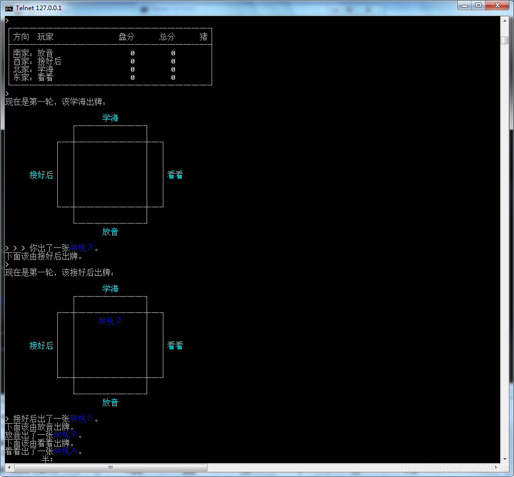 用 l note 查各人得分。用 l table 查桌子上的牌。