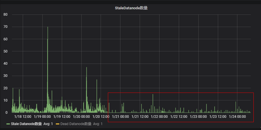 升级后HDFS-13671的优化效果:集群StaleDataNode数量大幅减少。