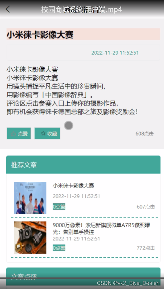 商城资讯,在商城资讯页面可以查看标题、资讯内容、封面等信息,并可对资讯进行点赞、收藏等操作。如图5-4所示。