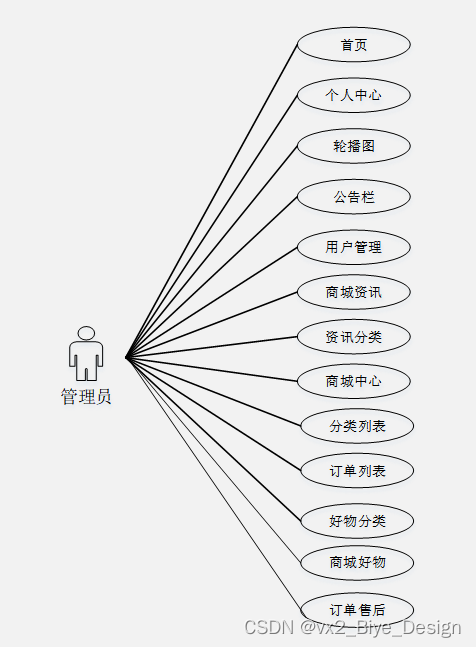 (3)确定好系统使用的技术,进行在线确认系统所划分的用户角色,并且根据用户角色划分确定所要设计的功能模块,对于校园商城系统小程序系统的设计主要划分别为管理员和用户角色,并所使用的功能模块也相应不同,但是系统的数据库实现的内容是交互的,用户可以随时根据自己的需求进行课程信息,对于系统工作人员可以根据自己的分管内容进行在线信息的处理及操作,管理员获取到所有用户的详细数据信息,并根据需求进行第一时间处理解决。