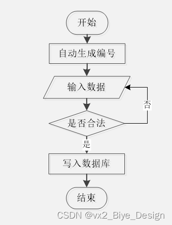 对于校园商城系统小程序,需要随时添加所需要的数据信息,对于用户添加信息,需要根据添加界面,根据选框的内容进行填写所要添加的数据信息,信息输入完成后判断数据信息是否符合要求,符合要求则添加完成,用户所添加的信息不符合要求,则需要返回到第一步,重新输入数据信息,再进行判断操作,如图3-2所示。