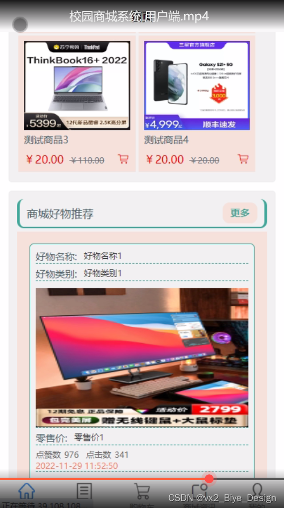 商城好物推荐,在好物推荐页面好物名称、好物类别、商品价格、商品图片、商品描述、点赞数等信息,并可根据需要加入购物车、收藏或购买等详细信息,如图5-7所示。