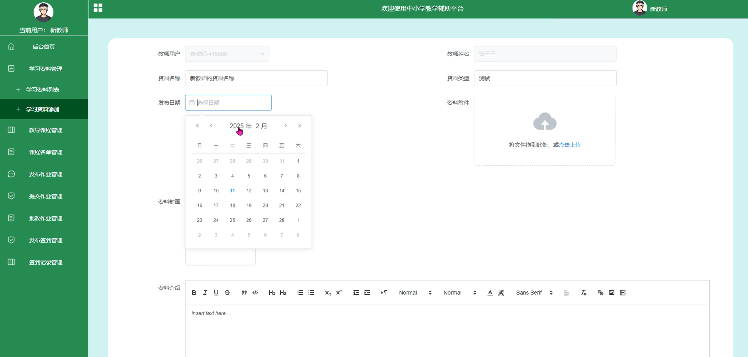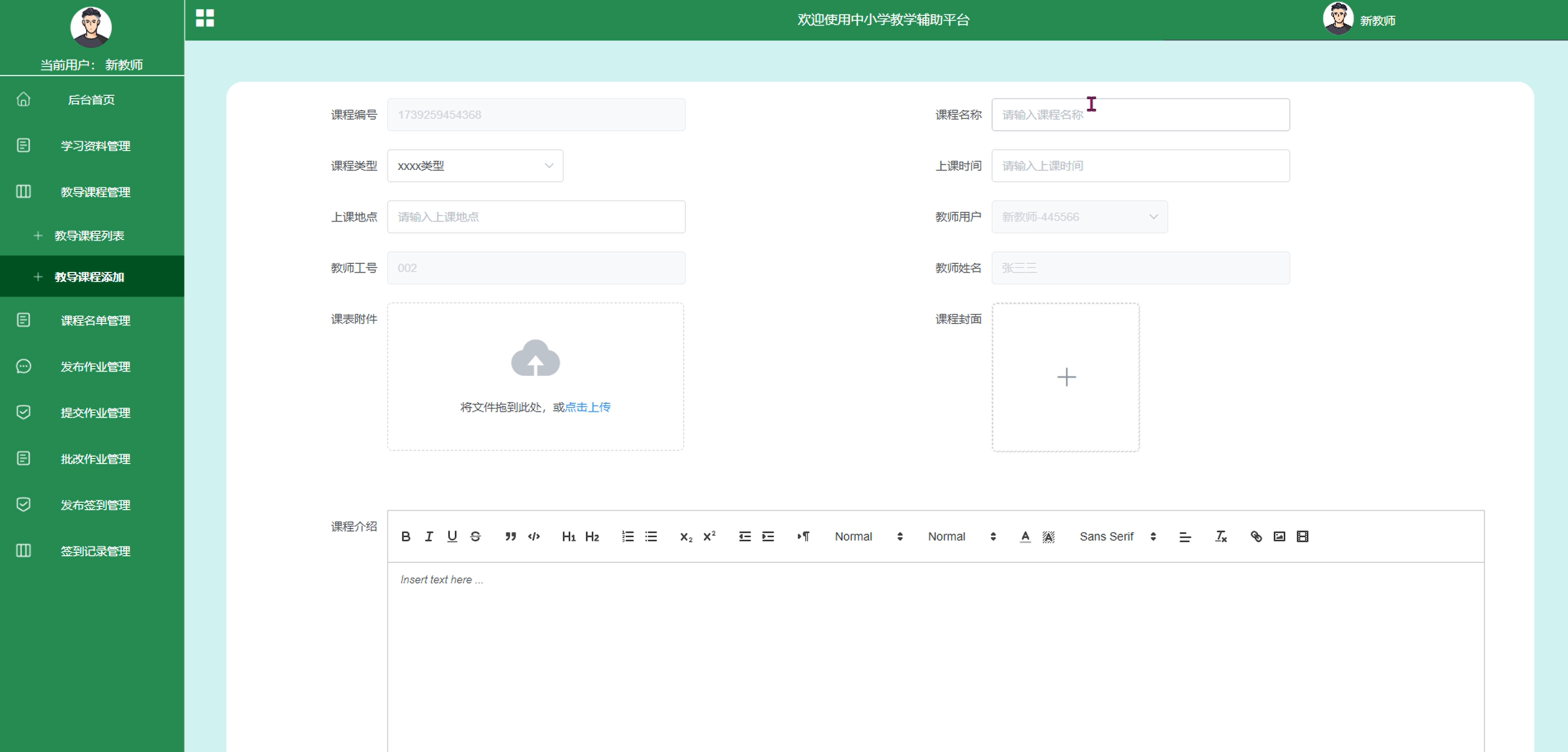 在中小学教育领域,随着教育理念不断革新,对教学质量与效率提出了更高要求。然而,传统教学模式下,教学资源分散于教师个人存储或学校不同部门,学生获取学习资料不便,教师也难以快速整合优质资源用于教学。同时,教学管理工作如作业收发、课程安排、学生考勤统计等,多依赖人工操作,流程繁琐且易出错,耗费教师大量精力,影响教学精力投入。
