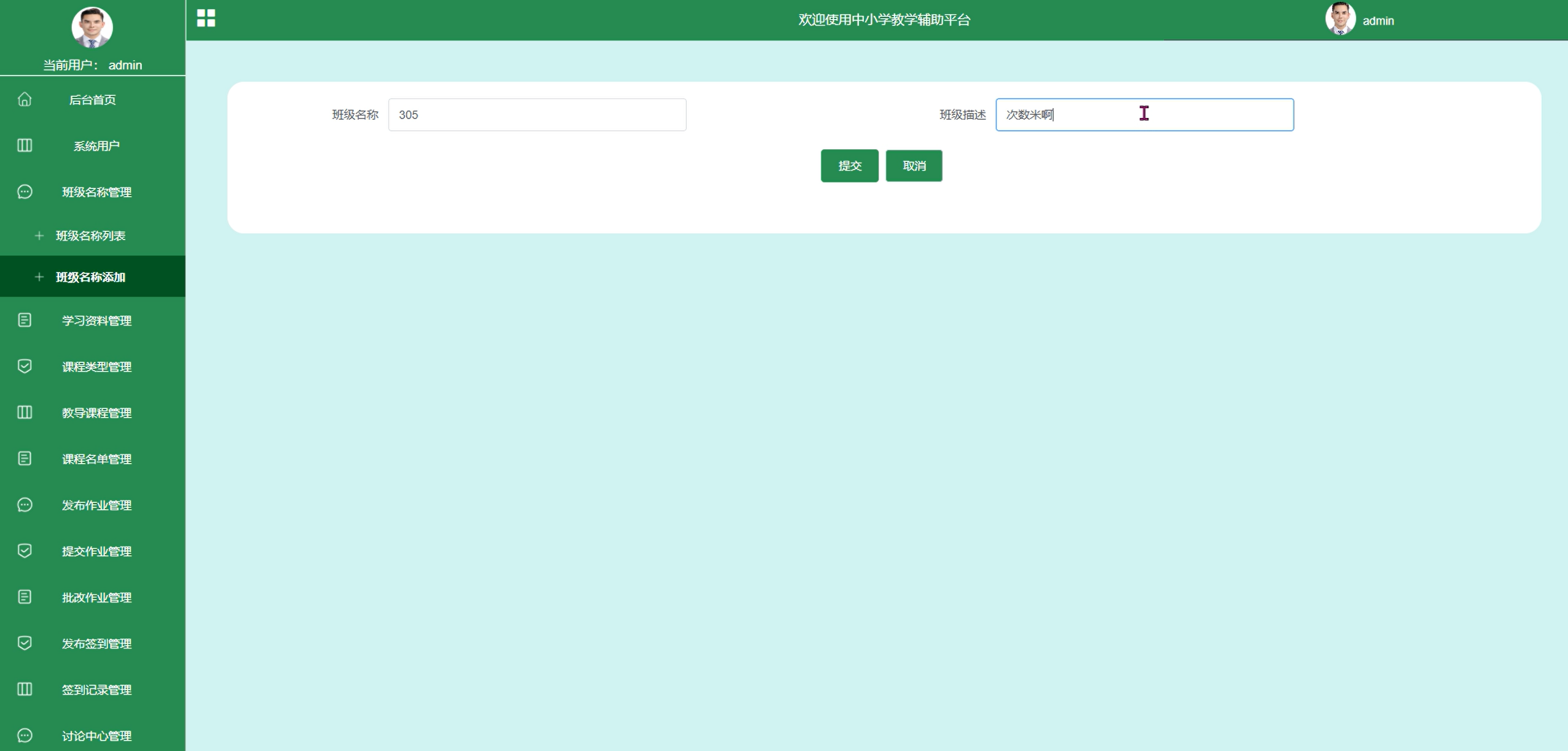 管理员借助班级名称管理功能,对学校班级信息进行维护。在班级信息页面,可创建新班级,输入班级名称、班级描述等详细信息。班级名称管理界面如图5-12所示。
