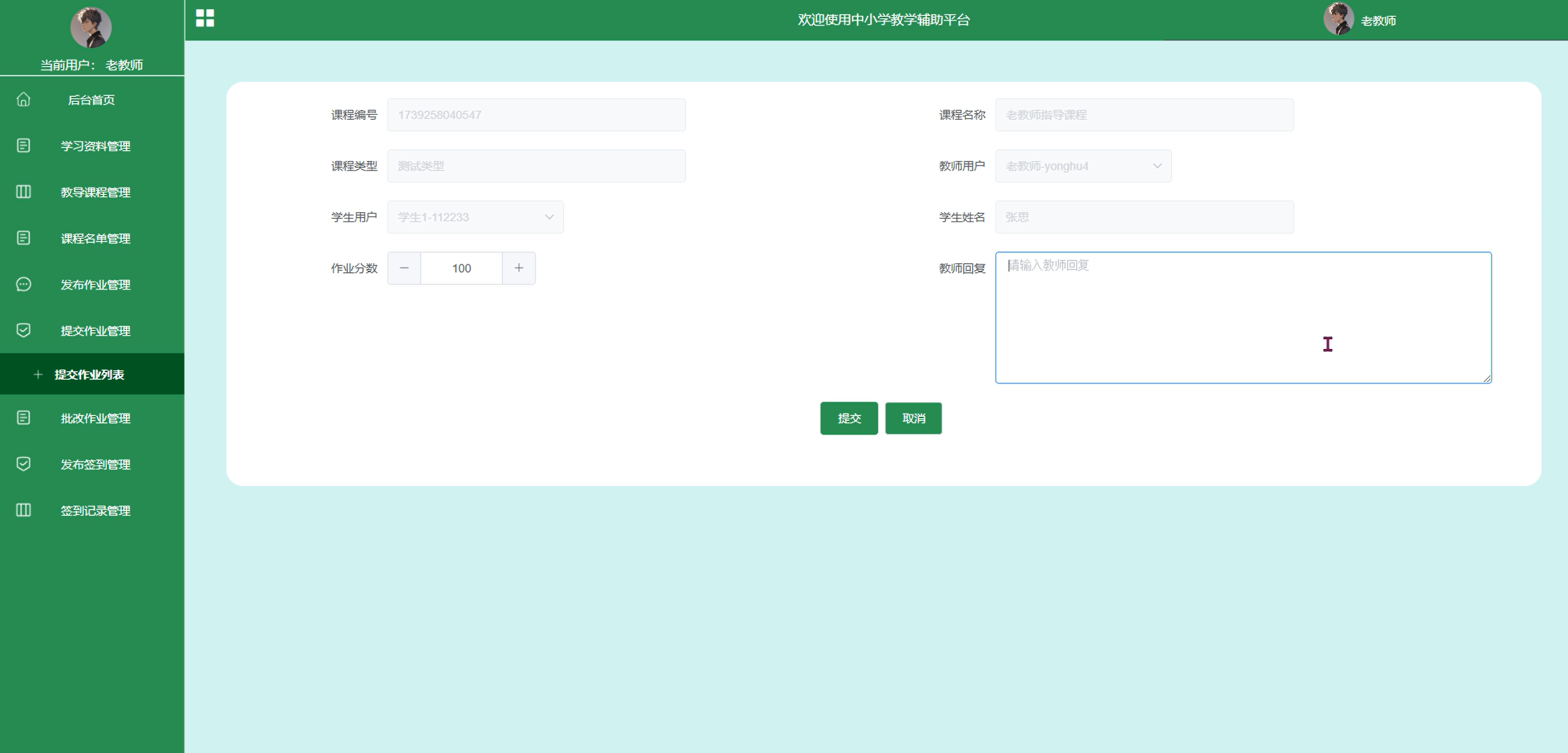 关键词:中小学教学辅助平台;SSM;Vue;MySQL